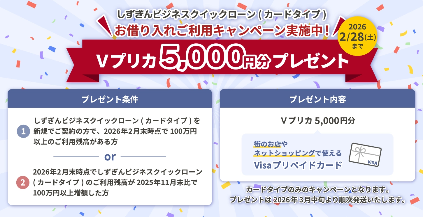 しずぎんビジネスクイックローンの特徴