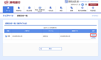 ご確認後、[戻る]ボタンをクリックすると、「トップページ」画面へ戻ることができます。
