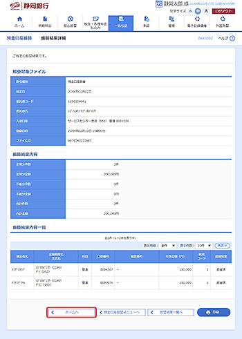 ご確認後、[ホームへ]ボタンをクリックすると、「トップページ」画面へ戻ることができます。