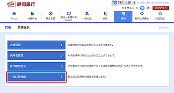 「業務選択」画面が表示されますので、[一括口座確認]ボタンをクリックしてください。
