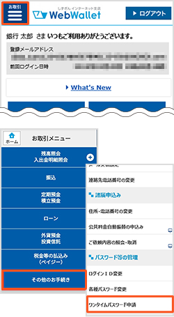 「その他のお手続き」メニュー > 「ワンタイムパスワード申請」