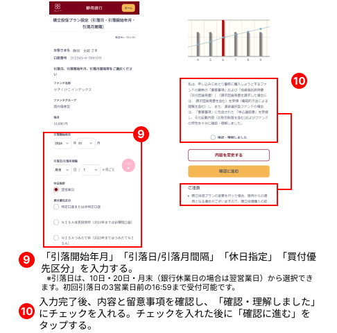 積立投信の契約内容(金額、引落日、買付優先区分)の変更を行います