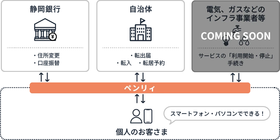 「ペンリィ」とは、株式会社生活基盤プラットフォーム(以下、生活基盤プラットフォーム)※が提供する引越しなどの手続きワンストップサービスです。